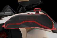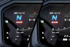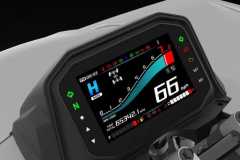 Pełno kolorowy 7" wyświetlacz TFT z automatycznym przełączaniem trybu dziennego i nocnego; funkcje: prędkościomierz, obrotomierz, wskaźnik poziomu paliwa, zegar, wskaźnik temperatury płynu chłodzącego, dzienny i całkowity licznik przebiegu, wskaźniki włączonego przełożenia, napędu i wybranego trybu jazdy, kontrolki ostrzegawcze.
