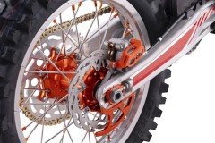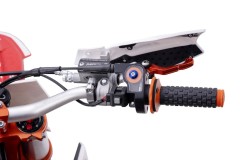 Mamy tu do dyspozycji tarczowe hamulce hydrauliczne. Motocykl otrzymał najnowsze tarcze hamulcowe wzorowane na markowych pojazdach. Klamka hamulca przedniego oraz sprzęgła są łamane w 3 kierunkach (na dól, na górę i od kierownicy) dzięki czemu unikniesz złamania klamek przy przewróceniu crossa