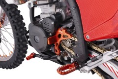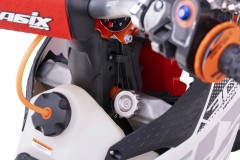 Cross z najnowszej serii pojazdów ASIX MOTORS – Racing Series. Napędzany jest jednocylindrowym silnikiem czterozaworowym o pojemności 300cm3. Silnik NB300 jest chłodzony cieczą i odpalany na rozrusznik elektryczny. Model ten przeznaczony jest dla młodzieży i dorosłych od ok. 180cm wzrostu. Wyposażony jest w manualną 6-biegową skrzynię biegów. W najnowszej odsłonie zastosowane zostało nowe zawieszenie HTW z ręczną regulacją oraz odpowietrznikami w przednim zawieszeniu. Ponadto zmieniliśmy okleinę na antypoślizgową, która zapewnia jeszcze lepszą kontrolę nad pojazdem i dołożyliśmy linkę do hamulca nożnego, dzięki czemu unikniesz niekontrolowanemu wygięciu się dźwigni przy kontakcie z przseszkodą. Asix XR99 posiada również licznik motogodzin, gniazda USB, handbary oraz wiele aluminiowych elementów CNC. Więcej szczegółów poniżej w opisie