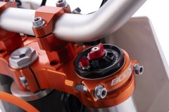Przednie zawieszenie stanowią amortyzatory HWT w układzie UPSIDE DOWN o długości 930mm. Z tyłu mamy do dyspozycji centralnie umieszczony amortyzator gazowo-olejowy HTW. Amortyzatory wyposażone są w pełną regulację pracy zawieszenia. Możemy ustawić twardość oraz siły dobicia i odbicia amortyzatorów. Regulację możemy wykonać ręcznie, bez konieczności korzystania z narzędzi. Ponadto przednie zawieszenie zostało zaopatrzone w odpowietrzniki