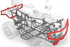 Solidna stalowa rama wraz z masywnymi przednimi i tylnymi zderzakami zapewnia maksymalną ochronę pojazdu w trudnym terenie i podczas ciężkiej pracy