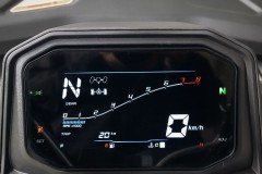 Pełno kolorowy 7" wyświetlacz TFT z automatycznym przełączaniem trybu dziennego i nocnego; funkcje: prędkościomierz, obrotomierz, wskaźnik poziomu paliwa, zegar, wskaźnik temperatury płynu chłodzącego, dzienny i całkowity licznik przebiegu, wskaźniki napędu oraz kontrolki ostrzegawcze.