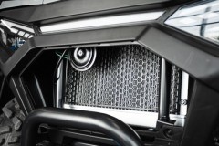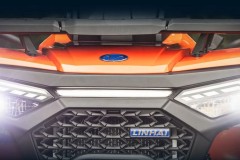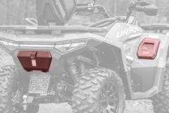 Elektryczna wyciągarka 3000 lbs z liną syntetyczną, homologowane urządzenie holownicze, 12" aluminiowe felgi designerskie, markowe opony Bulldog 25", kompozytowe bagażniki z przodu i z tyłu, osłony klamek i dłoni, oświetlenie Full-LED, pełno kolorowy 7" wyświetlacz TFT, osobne podwyższone siedzenie pasażera z oparciem pleców, uchwyty o antypoślizgowej powierzchni.