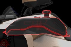 Pełno kolorowy 7" wyświetlacz TFT z automatycznym przełączaniem trybu dziennego i nocnego; funkcje: prędkościomierz, obrotomierz, wskaźnik poziomu paliwa, zegar, wskaźnik temperatury płynu chłodzącego, dzienny i całkowity licznik przebiegu, wskaźniki napędu oraz kontrolki ostrzegawcze.